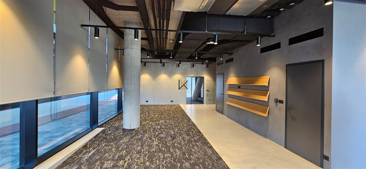 Pronájem obchodního prostoru v přízemí DOCK IN FIVE o velikosti 159,9 m2. Daný prostor je ideální pro tým o cca 10–15 lidech. Daný prostor je vhodný například pro banku, pojišťovnu, obchod, kancelář, advokáti, právníci, marketing, knihkupectví, například i prodej zdravé výživy, nebo i masáže (velmi poptávaná služba v DOCKu od nájemců) a jiné. Je sice kolaudován jak kancelářský prostor, ale není problém prostor rekolaudovat v případě potřeby.
