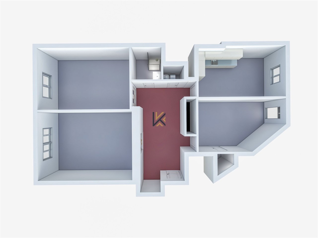 Pronájem krásné kancelářské jednotky s vlastním zázemím (3 neprůchozí místnosti + kuchyň + sklad)