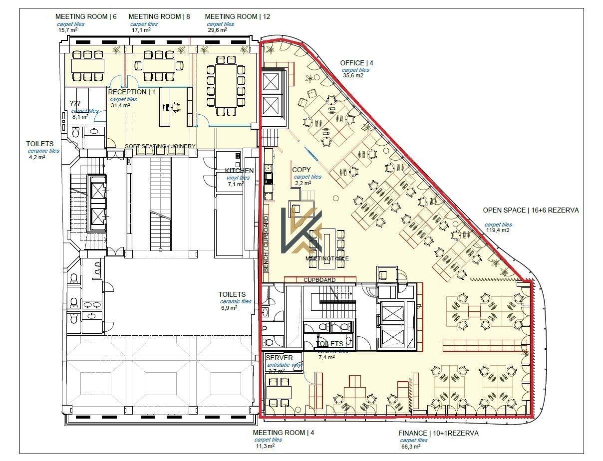 Moderní kancelářské prostory na unikátním místě o rozloze 353 m2 ve 3. patře. Může se jednat o podnájem nebo nájem.
