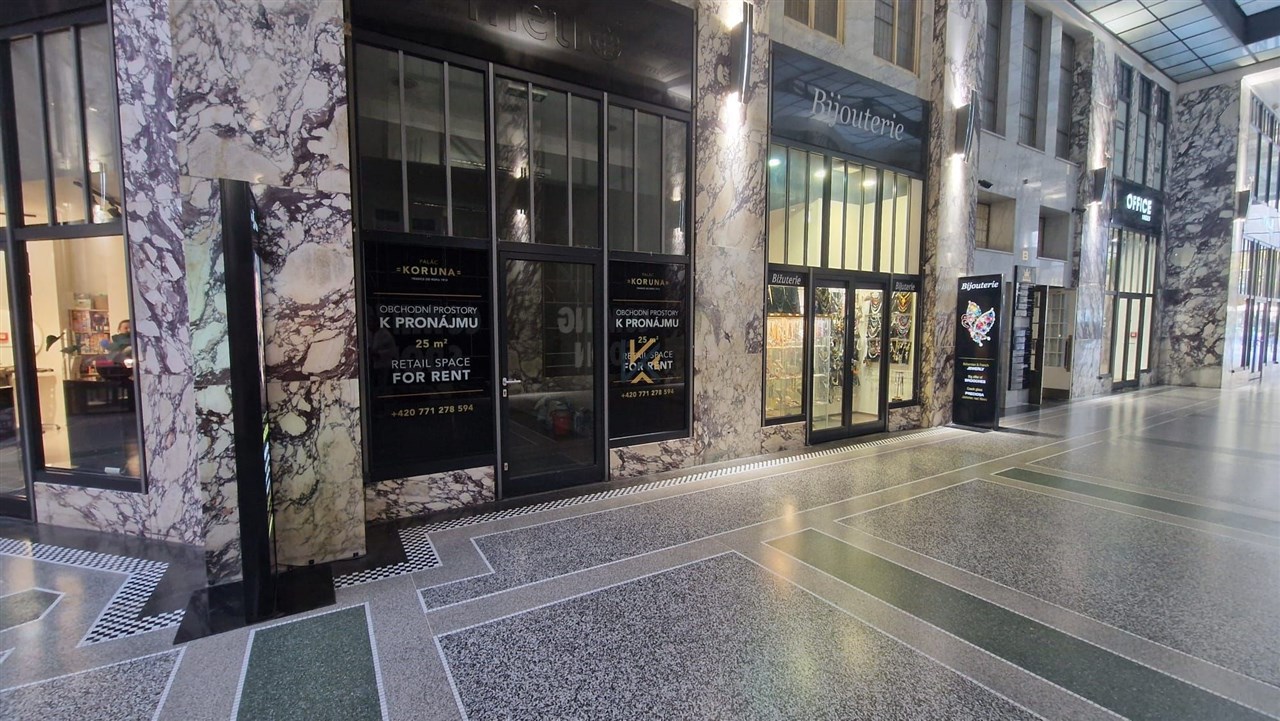 Obchodní jednotka v pasáži Paláce Koruna o velikosti 25 50 m2. Marketingové poplatky 1 EUR/m2. Obratové nájemné: 912%. Doba nájmu 5 10 let. Kauce: 3 nájmy + služby + DPH