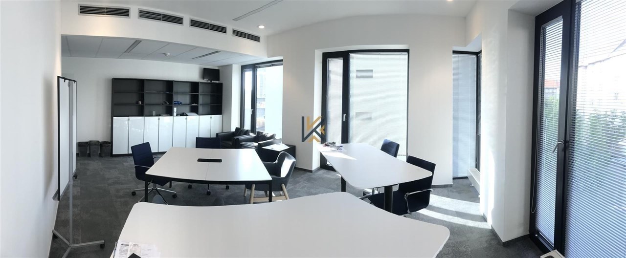 Jedná se o samostatný kancelářský prostor umístěný ve druhém patře budovy o velikosti 293 m2. Kancelářský prostor je momentálně řešený částečně jako open space a částečně jako uzavřené menší kanceláře, využívané i jako zasedací místnosti. Případně je samozřejmě možné upravit kanceláře dle přání nájemníka.