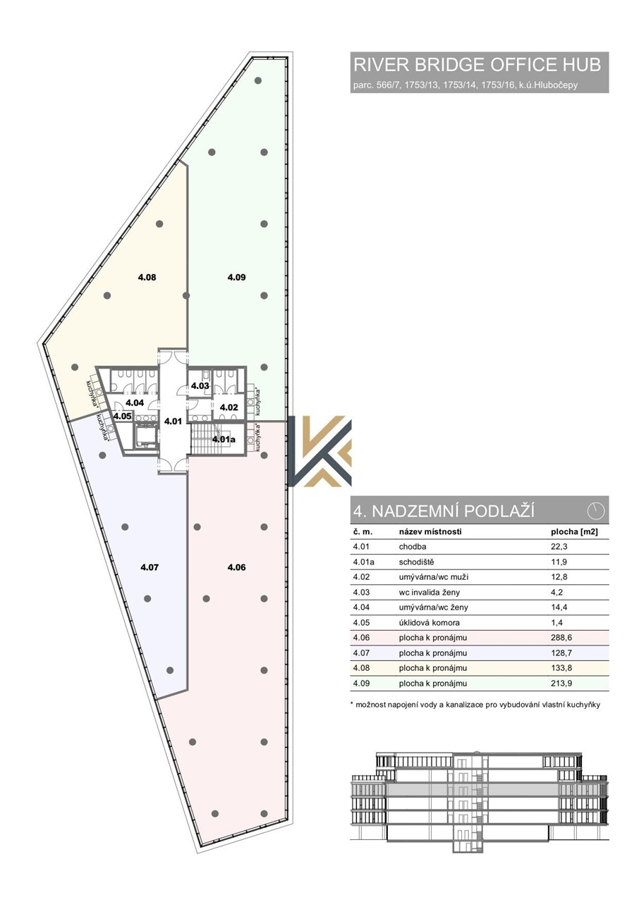 Nabízíme k pronájmu kanceláře o rozloze 820 m2 ve 3. patře.