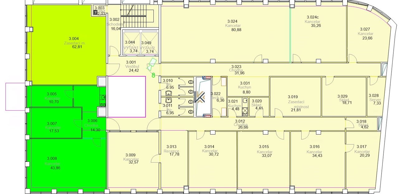 Klimatizované kanceláře o velikosti 157 m2.