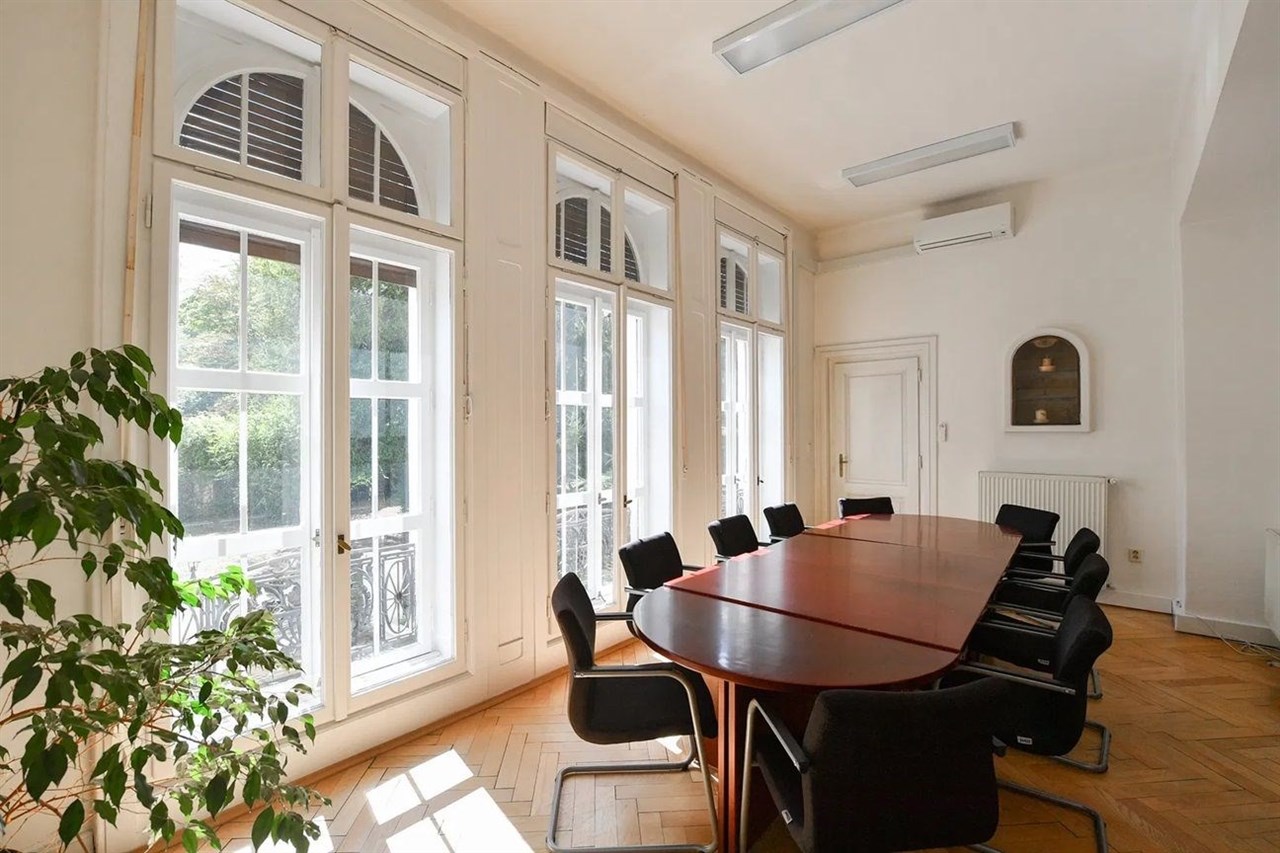 Kancelářské prostory k pronájmu v reprezentativní prvorepublikové vile nacházející se v prestižní lokalitě Prahy – Hradčanech, v těsné blízkosti Belvederu a Pražského hradu. Čtyřpodlažní vila se dvěma balkony je obklopena udržovanou okrasnou zahradou a prošla citlivou rekonstrukcí v 90. letech. Nabízí klimatizované kancelářské prostory s recepcí, konferenčními místnostmi, kuchyňkami a sociálním zázemím na každém patře; ve 3. patře je navíc k dispozici sprcha. K objektu náleží střežená venkovní parkovací plocha pro 28 vozidel.